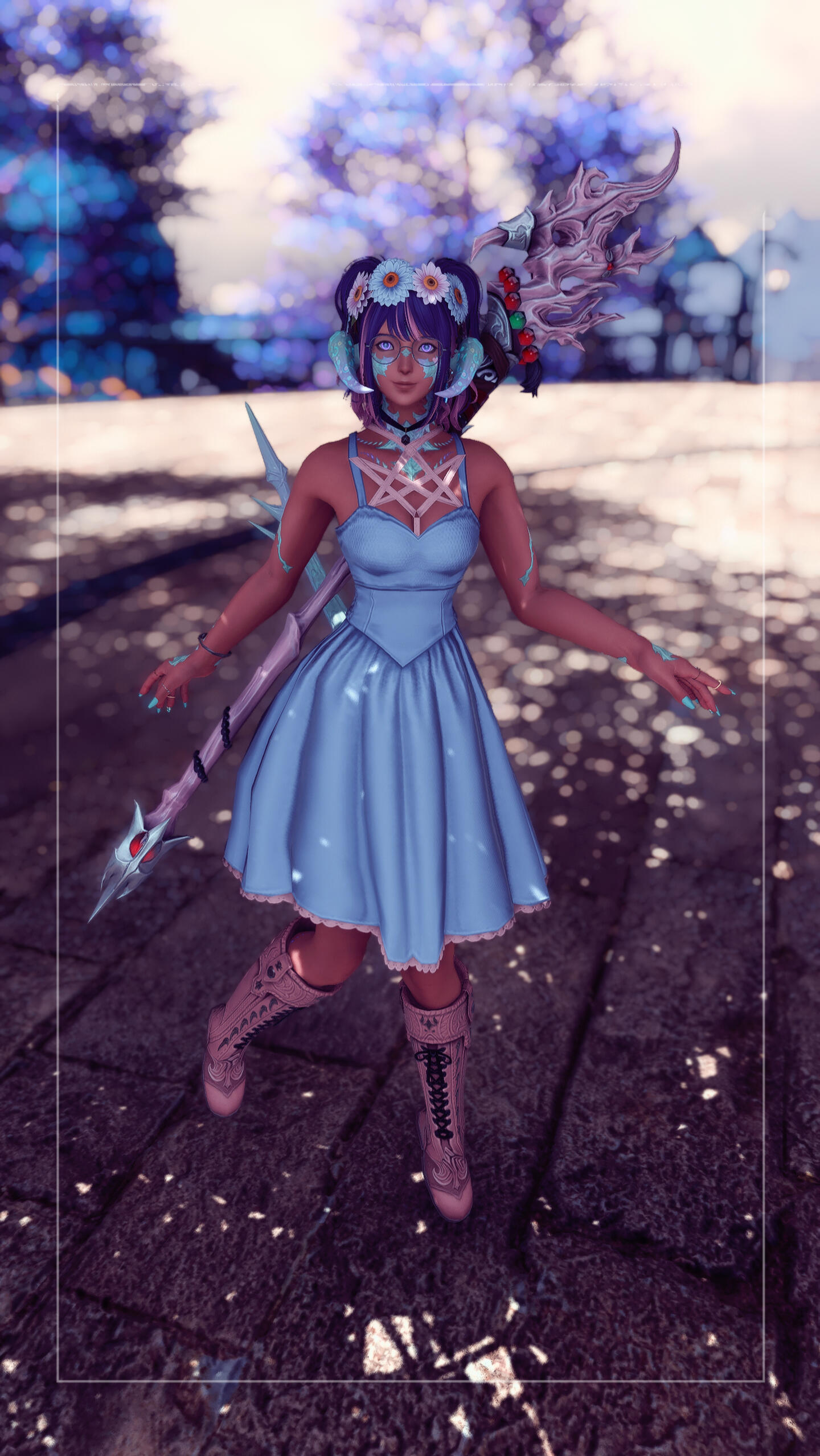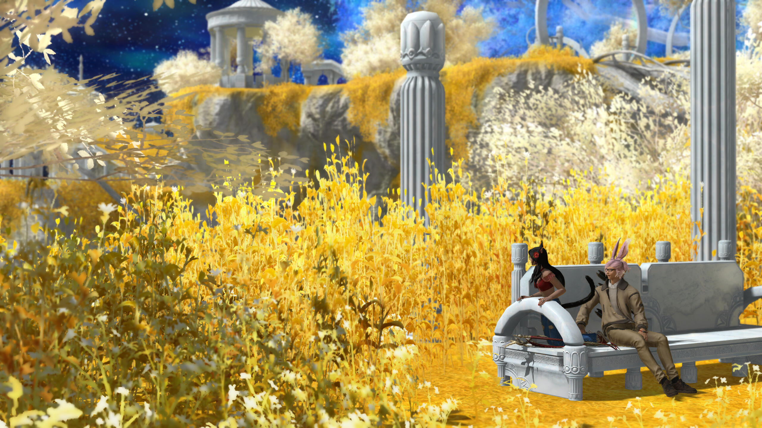 To navigate this website click on the buttons to view gposes sorted by year, or select more to view other categories. The year view contains my favourites but there are a few photos exclusive to some of the categories! Enjoy browsing these galleries containing many of the gposes I've taken over the years.Click on images in the galleries to make them full size. The Weekly Inspiration photos can’t be viewed bigger, but they all have a link to the original prompt post on Bluesky. If you enjoy taking your own gposes perhaps these location prompts will inspire you as well.I also offer my services to make custom poses and gpose shots using a shader of choice through ReShade or no shader at all if you prefer the look of the vanilla game. I can fulfill a commission just for pose files or poses and pics! Scroll down for more info and prices.There's also a form at the bottom of the website that can be used to send me feedback/requests!
